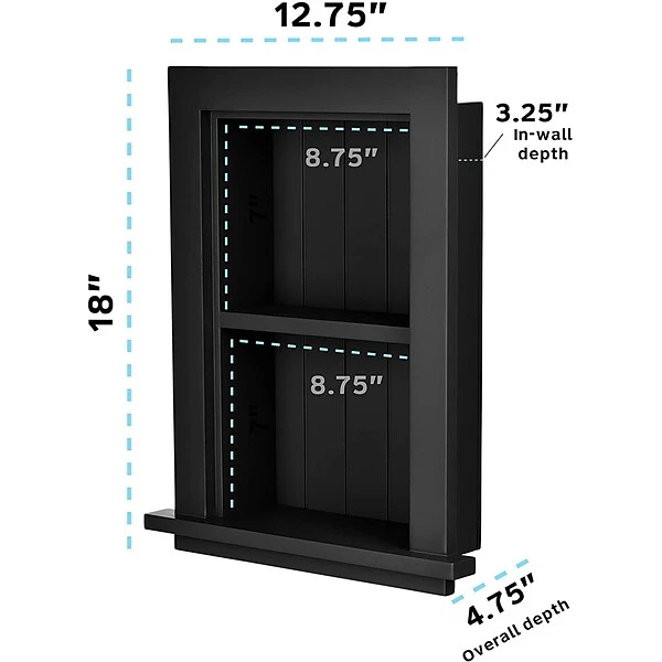 - FULLY ASSEMBLED READY TO USE. Measuring 12.75 W x 18 H x 4.75 D in size with a 3.25-inch, in-wall depth comes full ready to use without any hassle of putting it together. We want to make life easier and save you time so you can quickly enjoy our fully assembled storage cabinet. This charming storage space is perfectly sized to fit into existing openings or into easily cut new openings.