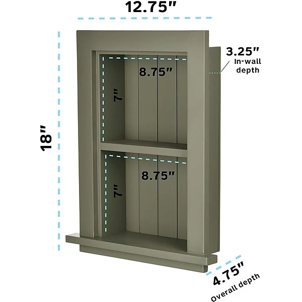 - FULLY ASSEMBLED READY TO USE. Measuring 12.75 W x 18 H x 4.75 D in size with a 3.25-inch, in-wall depth comes full ready to use without any hassle of putting it together. We want to make life easier and save you time so you can quickly enjoy our fully assembled storage cabinet. This charming storage space is perfectly sized to fit into existing openings or into easily cut new openings.