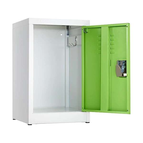 Here is the perfect answer to restoring order to a child’s bedroom or study area. The AdirOffice home locker for kids can be personalized with the name slot on the vented lockable doors. Rugged steel framing and sides in a neutral off-white color are accented by vibrant door color in green. It is shipped as a kit with two keys and easy-to-follow assembly instructions, making it a great project for both parent and child.