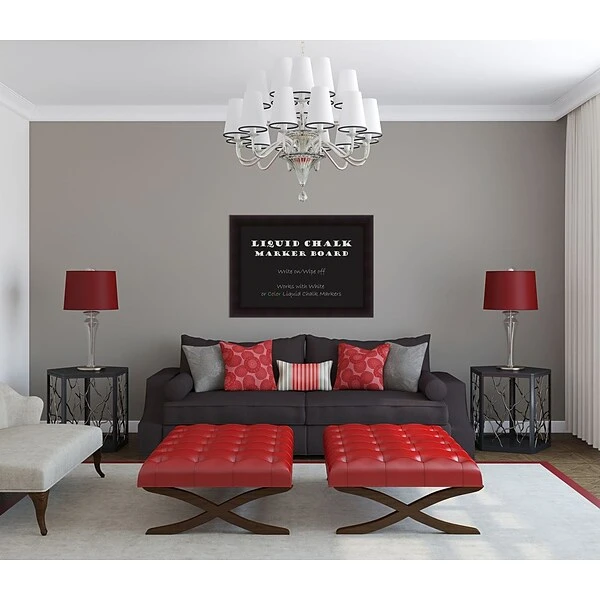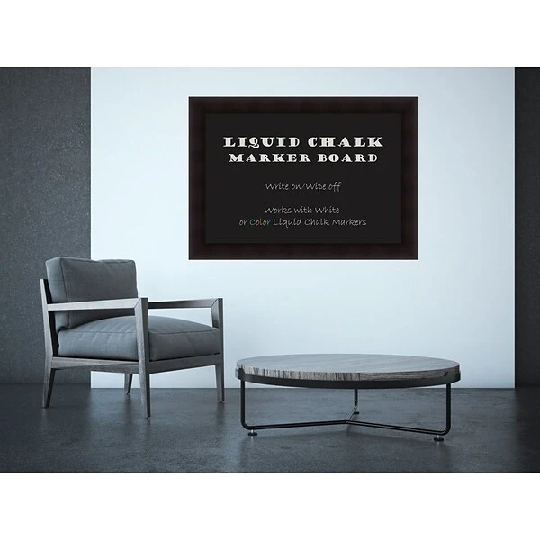 A beautifully framed liquid chalk marker board turns everyday notes and messages into an ever evolving work of art. It’s a great way to add function to your home without sacrificing style. This high quality, 100% real wood decorative liquid chalk marker board features a flat 3 1/ 8″ wide deep espresso frame with a smooth, subtle woodgrain appearance for a simple, contemporary look. It works only with Liquid Chalk Markers (not included) and wipes clean with a damp cloth. Will not work with traditional dry chalk. Your board is handcrafted in a small custom art and frame shop in Madison, Wisconsin using a nonporous gallery-quality glass which provides a smooth writing surface that will not ghost or stain. Frame is made of solid wood and durable wires already affixed to the back for easy hanging vertically or horizontally.
