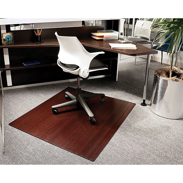 Naturally elegant bamboo is more durable than a plastic mat and adds a charming organic touch to any office area.