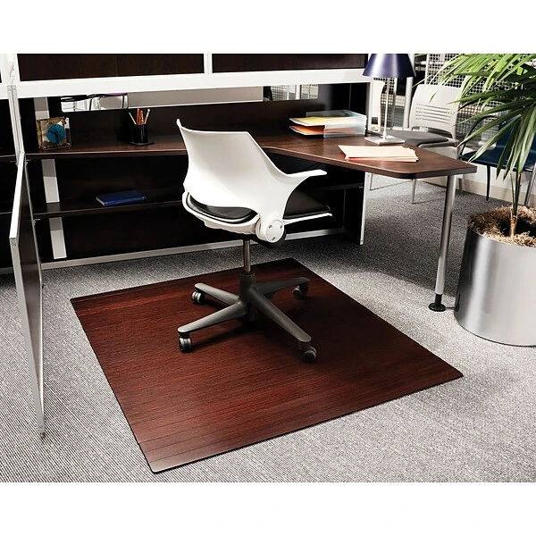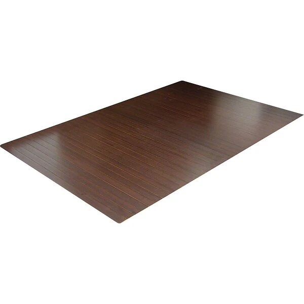 Add a stylishly traditional look to your office while preventing damage to your commercial carpet or hard flooring with this Anji Mountain bamboo chair mat. It features a dark cherry finish that blends easily with most decor, and it rolls up for easy transport when needed. A felt backing with nonskid gripper dots keeps it securely on your floor when used with chairs with casters.