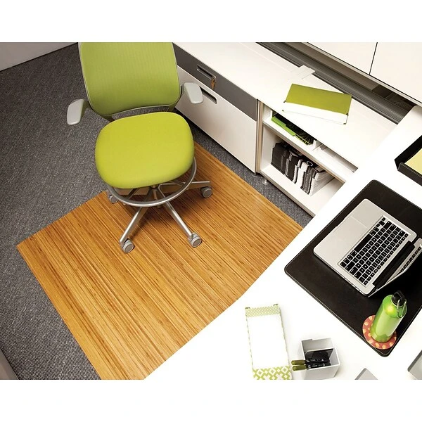 Designed for exceptional style and convenience, this Anji Mountain bamboo chair mat adds the look of natural hardwood flooring to your space while protecting your commercial carpet or hard flooring from damage caused by chairs with rolling casters. Its roll-up design makes it simple to take along to other locations when needed.