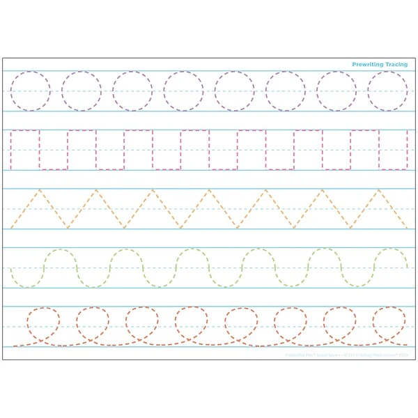 It’s a poster, it’s a placemat, it’s both! Smart Poly® material has been designed for the classroom and home. The material is strong, durable, water resistant, and does not need lamination. Heavy duty surface for fun and colorful learnings. Write-on/wipe-off surface for use with dry erase or water based markers and washable crayons. Measures 13″ x 9.5″. Practice tracing different lines designed to help young students and children with prewriting skills.