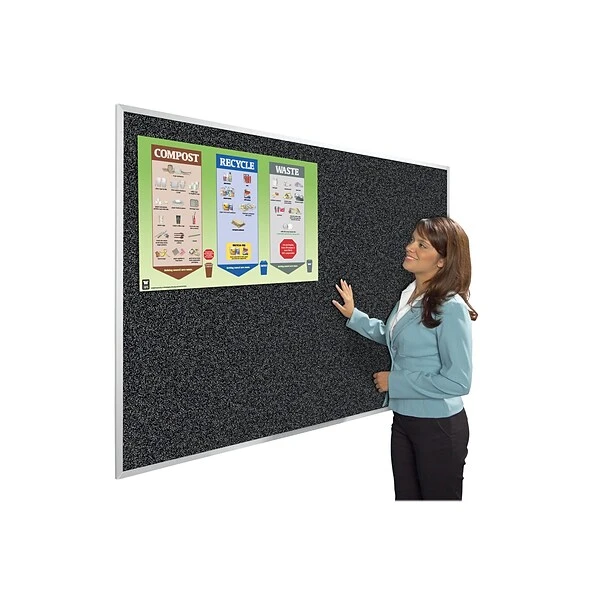 Track activities, schedules, and projects in one place with this bulletin board. The recycled rubber backboard is self-healing, durable, and easy to clean, making this board ideal for high-traffic areas. This board’s anodized aluminum frame features curved edges for increased safety and a sleek, professional appearance. This 3 x 4-foot, silver framed Balt bulletin board has enough room to display a variety of papers, mementos, and reminders.