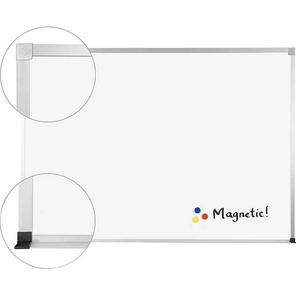 Thanks to its magnetic surface, this steel whiteboard doubles as a reusable bulletin board. The porcelain finish creates a smooth surface for your dry-erase markers, and the board resists staining and ghosting for a crisp, clean look. With its white background, this board lets the bright colors from your markers stand out, providing enhanced visibility for your messages.