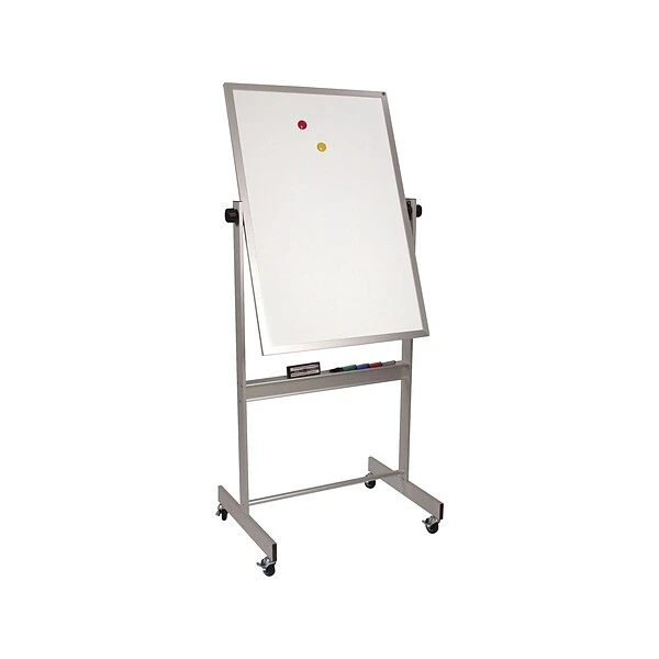 - Double-sided mobile reversible non-magnetic whiteboard provides additional functionality for moderate use in spaces with regular traffic