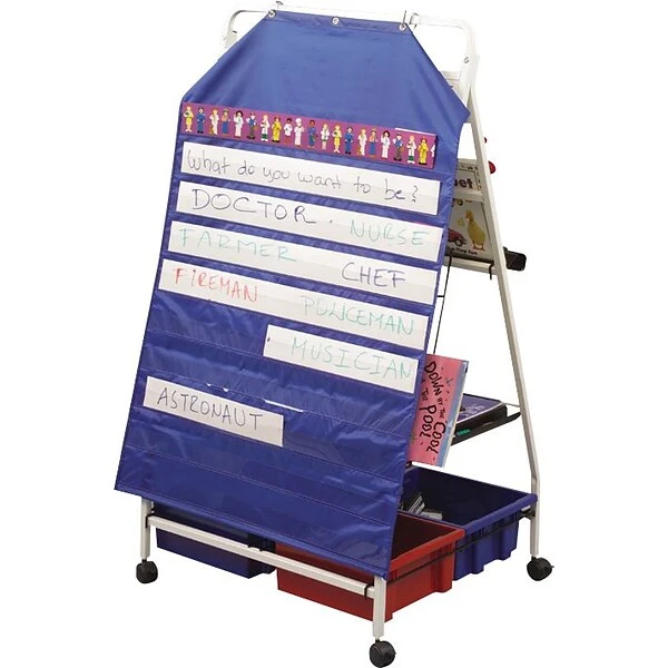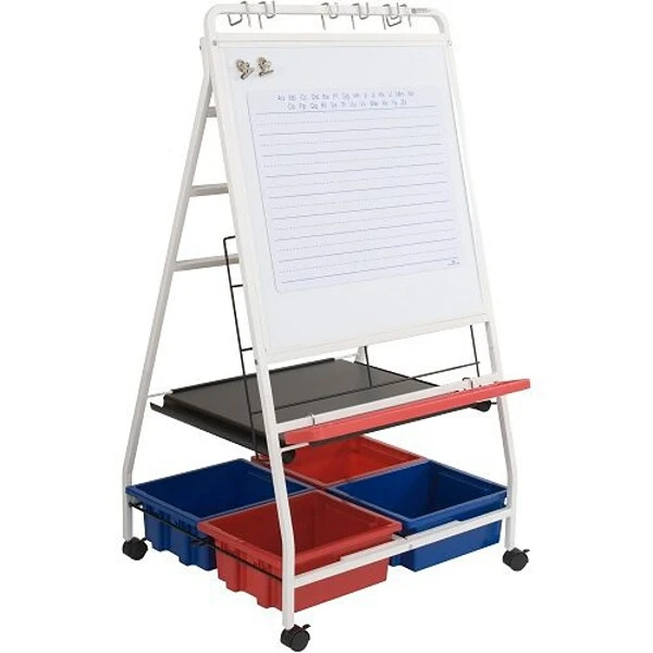 - Flexible all-in-one classroom learning station easel with storage and whiteboard surface