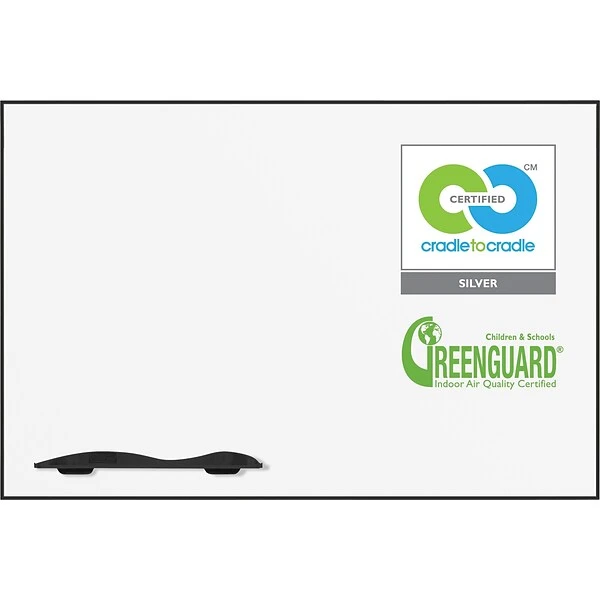 Use dry-erase markers to write or draw on this black dry-erase board’s porcelain surface, and wipe it clean using an eraser or a cloth. The surface resists ghost marks, scratches, dents and stains to provide years of service. Ideal for heavy-use settings, this board features a sturdy MDF backing that resists moisture and warping for lasting stability. The rugged frame adds an extra level of strength and offers a neutral look that complements your professional setting.
