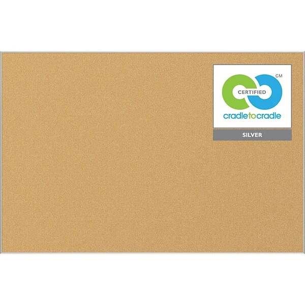Use in Heavy Traffic Areas. This Best-Rite eco corkboard is rated for heavy use, making it a good choice for high-traffic community posting areas. Public libraries, employee break rooms, and retail stores will appreciate the longevity of the bulletin board and the fact that customers and visitors can always remove and add messages as desired. Ecofriendly Bulletin Board. Make an environmental choice when outfitting your office wall with this bulletin board. The board is cradle-to-cradle certified, which means it is made out of a high percent of renewable or recycled resources. Natural cork is also an ecofriendly option for your office as it is unlikely to cause health issues with employees or interact with existing substances. Reliable Posting Surface. The self-healing cork surface and high-quality substrate deliver a reliable surface. You can trust that items posted on your board stay in place, and after you remove pins, the holes are not apparent.