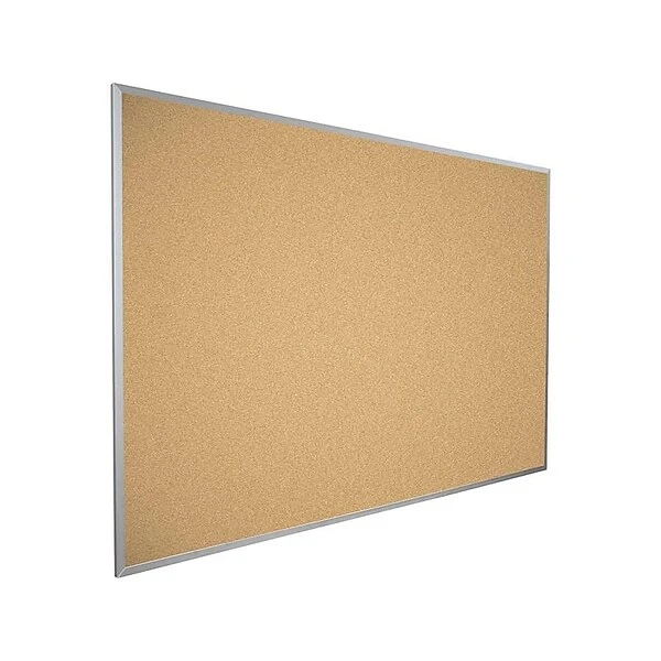 Design eye-catching displays to advertise programs, display awards, and hang announcements with this massive cork bulletin board. This board’s thin cork surface is bonded to a durable tacking surface to reliably hold pins even after extensive use. This natural cork bulletin board has an aluminum frame with mitered corners for added stability and a professional appearance suitable for a gymnasium, school, library or office.