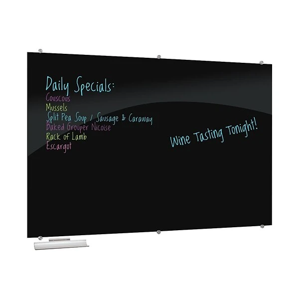 - Tempered safety glass with a smooth finish accepts dry erase, wet erase, chalk markers, and more