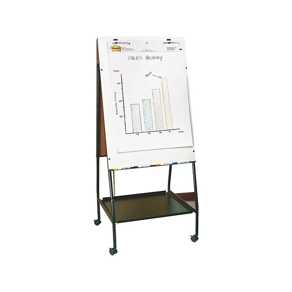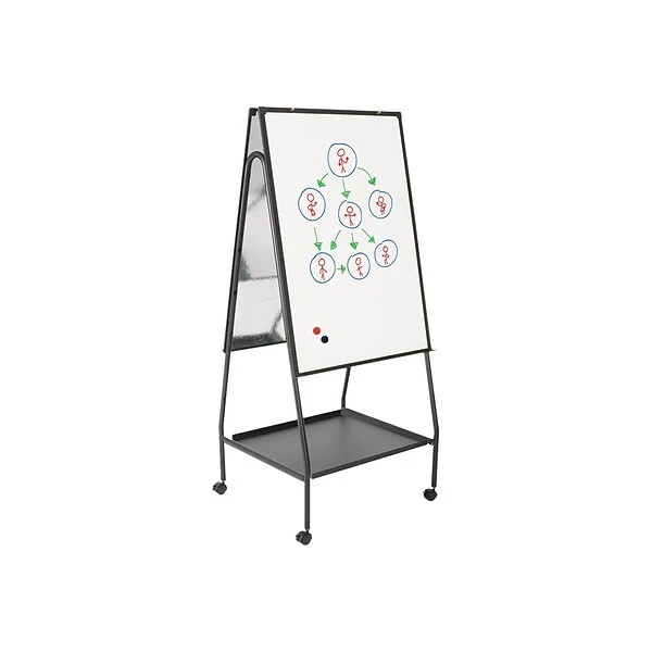 Erase with Ease The durable porcelain surface on this Best-Rite mobile dry-erase easel offers impressive durability and erasability, so you never need to worry about ghosting from prior presentations ruining the effect of your current one. Keep Accessories Nearby The wide accessory tray on this whiteboard provides plenty of room for visual aids and dry-erase supplies. It’s accessible from both sides of the board and has a large enough surface to hold bulky items, such as physical models and prototypes. The surface is also magnetic, making it simple to post printed documents, blueprints, and charts directly on the board, and the board also has holders for attaching a flipchart pad. Customize Your Board Because you can adjust the height of this Best-Rite mobile dry-erase easel, you can customize it to your needs every time you give a presentation. Convenient 2-inch rolling casters let you maneuver it into the ideal position so that everyone can see what you’re writing, and you can flip it to reveal a second work surface when you’ve filled up one side of the board.