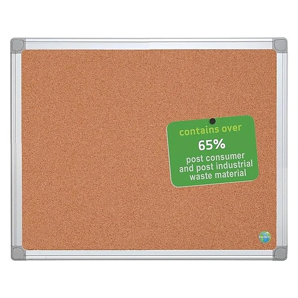 Pin notes, documents and letters to this cork board for a secure display system. This cork board features an aluminum frame and a tough surface that doesn’t show wear or tear from previous pin holes. With its convenient four-corner mounting system and the included fastening kit, this MasterVision cork board mounts either horizontally or vertically to suit your preferences.