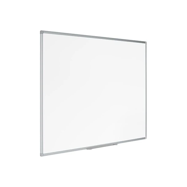 Write down your ideas or send a message to everyone using this dry-erase board. The sturdy aluminum frame and four-corner mounting system allow for communication in a wide range of environments, and the snap-on pen tray conveniently stores markers. Whiteboard surfaces are available on both sides, doubling this Bi-Office board’s total writing area.