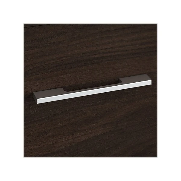 - Available in your choice of stylish black walnut, sand oak, modern hickory, and storm gray finishes with light silver drawer pulls