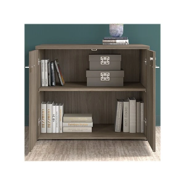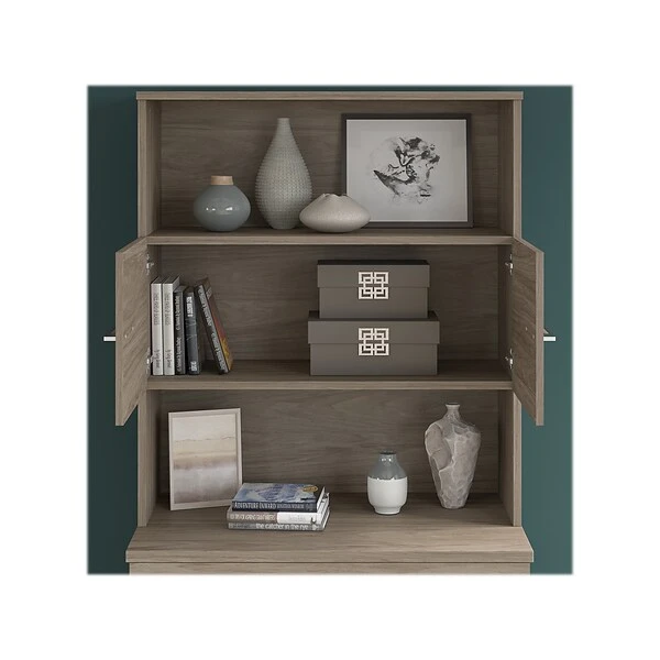 - Bundle includes: 36″W storage cabinet with doors, 36″W bookcase hutch