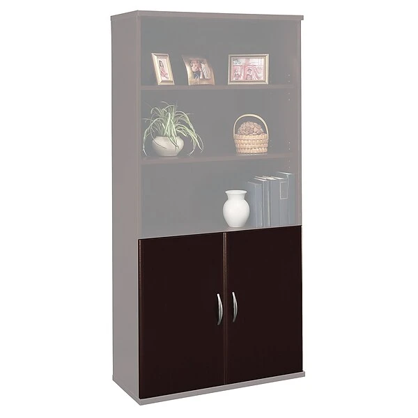 Westfield by Bush Business Furniture provides classic styling with clean lines. This Half-Height Door Kit in Mocha Cherry mounts onto the Westfield open double bookcase or single bookcase when enclosed storage space is needed. Includes Euro-style, self-closing, adjustable hinges. Kit provides two right or left mountable doors for placement flexibility. This product is also compatible with the Westfield Elite Collection for a cohesive style. Solid construction meets ANSI/BIFMA test standards in place at time of manufacture. The Westfield Collection is backed by the Bush Business Furniture’s 10 Year Warranty. American made with U.S. and imported parts.