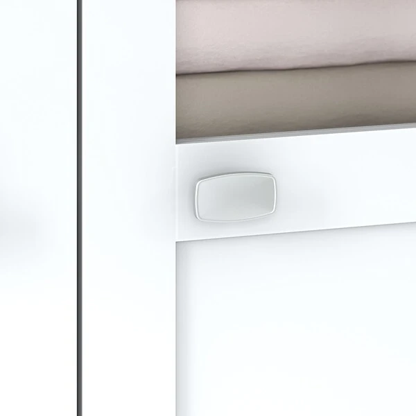 - White cabinet accented by contemporary Satin Chrome hardware for an elegant look