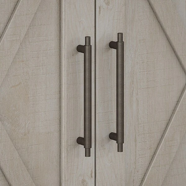 - Unique X pattern accents on doors and side panels create a casual charm that works well with coastal and farmhouse decor
