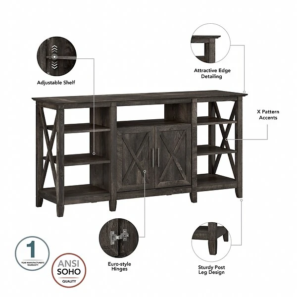 The Bush Furniture Key West tall TV stand with a set of two bookcases is a perfect way to bring the feel of a coastal retreat right to your living room. Get together for movie night, or catch up on your favorite show around an entertainment center that supports up to a 65″ TV and 75 lbs. The upper shelf provides a place for components while the two-door cabinet and open storage areas organize media. The bookcases each have two fixed shelves and three adjustable shelves to accommodate entertainment essentials and decorations of various sizes. All five shelves have a weight capacity of 50 lbs., so you can store paperback and hardcover books or a larger movie collection with confidence.