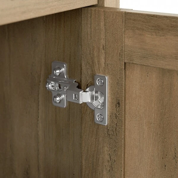 Organize your home with a storage cabinet that combines casual style with a convenient, versatile design. The Bush Furniture Salinas tall storage cabinet with doors features four concealed shelves for keeping household items, office supplies, and entertainment essentials in order and out of sight. Three adjustable shelves accommodate bulky items, such as binders and photo albums, while the one remaining shelf is fixed for stability. Each shelf supports up to 25 lbs., so you can confidently store larger materials. This floor cabinet makes a great addition to virtually any residential space. This tall two-door storage cabinet is tested to meet ANSI/SOHO standards for safety and performance and is backed by a 1-year manufacturer limited warranty.