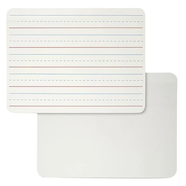 Dual sided, pre-printed lines on one side and blank on the other offers endless uses. Blank side works great for classroom games, math lessons and reminders. While our pre-printed side is great for penmanship and sentence writing. Durable Masonite lap boards are 9″ x 12″ and can be used with all dry erase markers. An environment friendly way to learn, as you just write, wipe off and re-use with no waste. Pack of 6 boards.