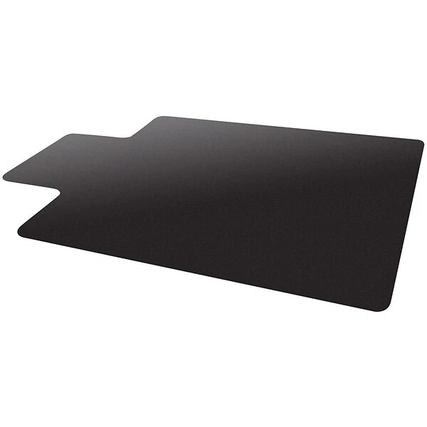 Deflecto Vinyl chair mat in black color measures 45″ x 53″ and secures commercial pile carpet including pad up to 1/4″. Wide lip chair mat is fixed and provides easy roller chair movement.