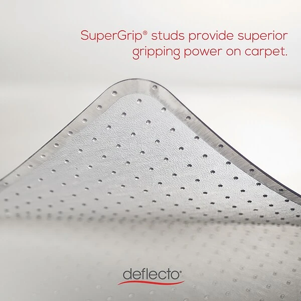 - Studded, protective vinyl beveled chair mat for highest pile/plush carpeting with padding.