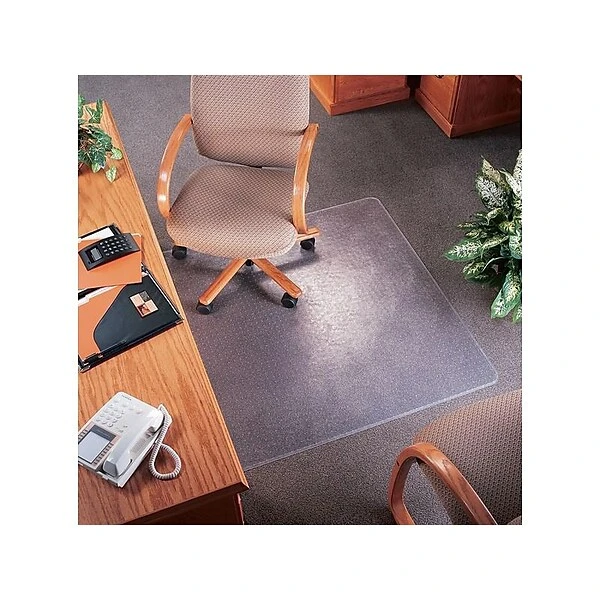 - Clear roll edges make moving chairs on and off this carpet chair mat simple