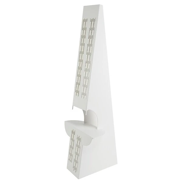 - 36 pt., 18 in tall – white SBS board – with double-wing easel, and peel & stick adhesive.