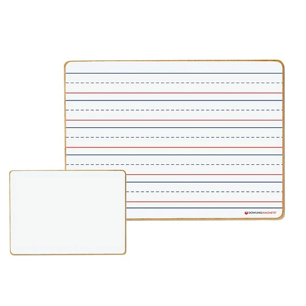 Twice the workspace – double-sided! Slim size and impressive durability make these ideal for student use. Pair with magnetic manipulatives and dry-erase markers (sold separately) in classroom centers, at home or for travel. Each magnetic-receptive board measures 12″L x 8.75″W and is Line-Ruled on side and Blank on the other. For Ages 3+/Grades PreK+. Pack of 6 boards.