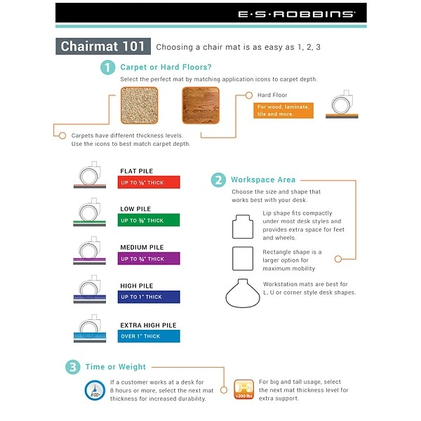 - Protects hard floor surfaces such as laminate, wood, and tile from chair caster wear and tear