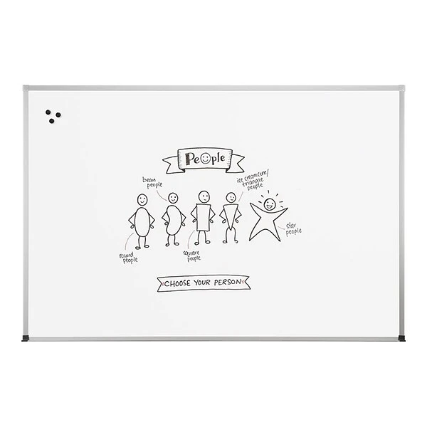 This durable whiteboard is crafted of porcelain steel laminated to a lightweight substrate, ensuring reliable performance in the face of regular use. The aluminum frame provides extra support and prevents warping, and the large surface area gives you lots of room to make notes.