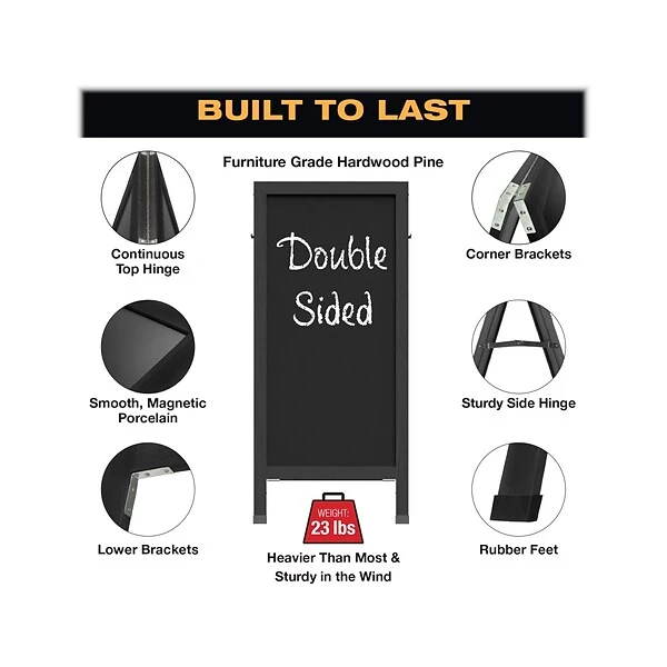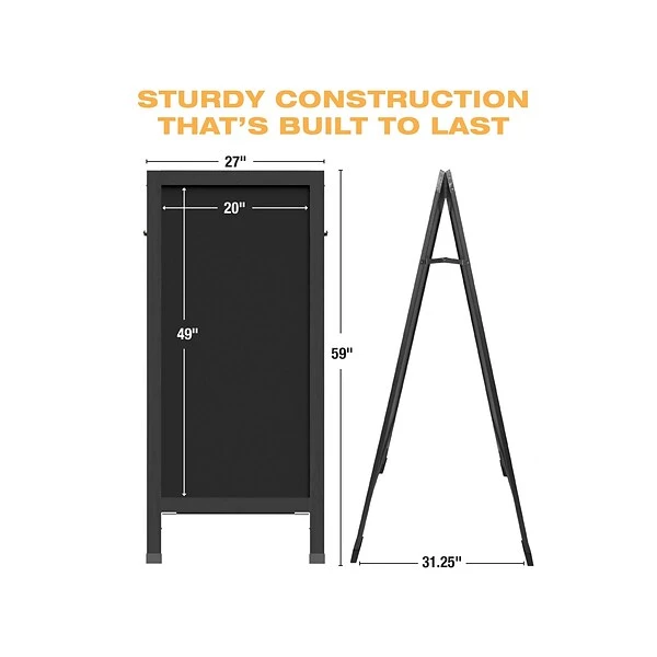 This Excello Global Products extra-large chalkboard standing sign is perfect for menu or promotional messages for restaurants, bars, cafes, stores, weddings, and special events. Great for indoor and outdoor use.