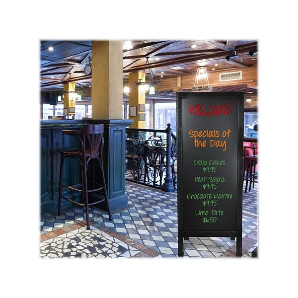 - Extra-large standing chalkboard with smooth writing surface is perfect for menu or promotional messages for restaurants, bars, cafes, stores, weddings, and special events