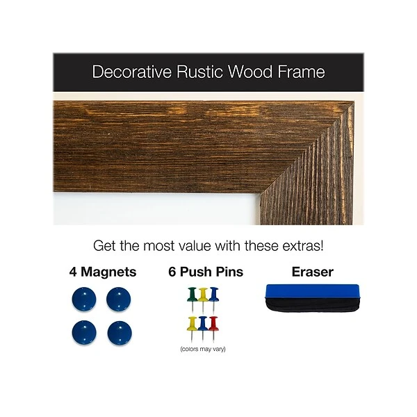 The Excello Global Products 24″ x 36″ dry-erase and cork board offers a high-quality wooden frame, four magnets, pushpins, and one eraser. The board comes with preinstalled brackets at the back and can be mounted horizontally or vertically. With its rustic wooden frame, it will surely add some flair to your room. Offers an elegant and professional look and feel and is made of durable materials that are sturdy enough for long-term use. Excello Global Products is a family-owned USA company and has have been making quality products for over 50 years.