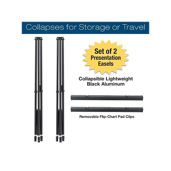 - Includes adjustable brackets to hold whiteboards and signage, and also has a removable top clip for paper pads or canvases