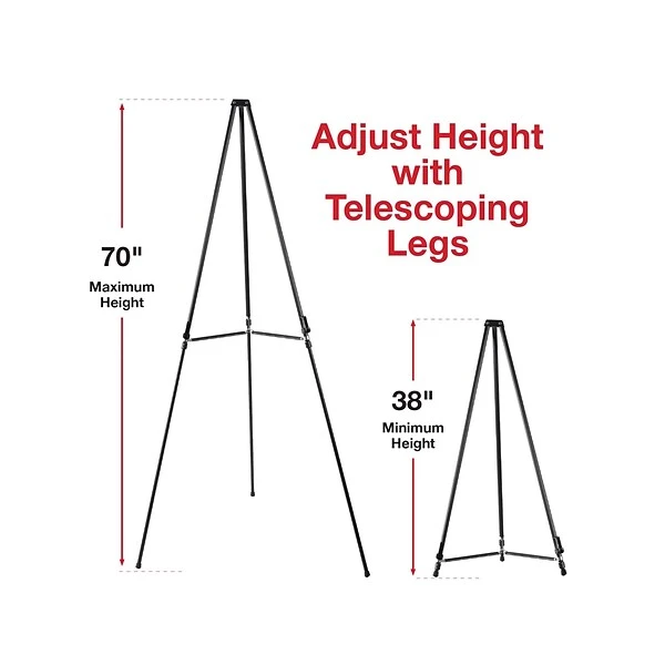 - Telescoping legs allow for height adjustment from 38″ to 70″