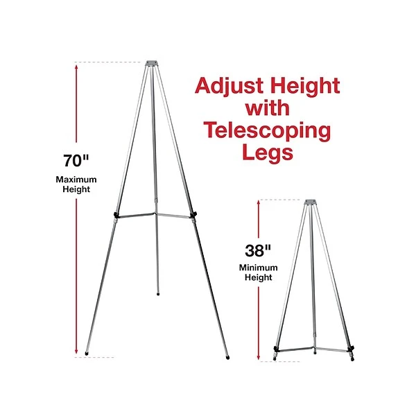 - Telescoping legs allow for height adjustment from 38″ to 70″