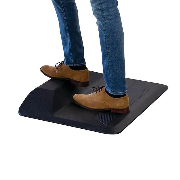 Stay active and comfortable with this durable Fellowes ActiveFusion Floor Mat. This durable anti-fatigue mat features the modern design that complements your home or workspace and suits a wide range of decor styles. The unique shape promotes stretching and movement throughout the day. This black mat encourages subtle movement to prevent fatigue. Use this 36 in. x 24 in. mat with any sit-stand for extra support while standing. The beveled edges help to avoid trip hazards.