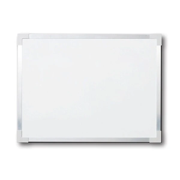 This aluminum framed dry erase board features a bright white dry erase surface. Dry erase markers will write easily, dry quickly, and wipe off clean with a soft cloth or eraser. Sleek aluminum frame will match any home, school, or office decor! Measures 36″ x 48″.