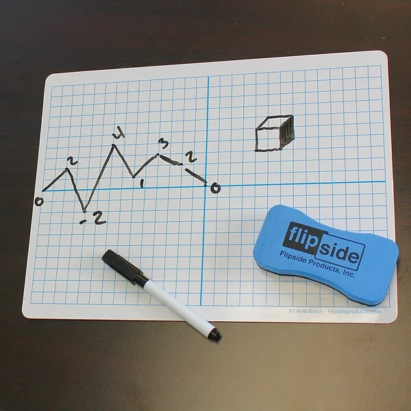 Two-sided, XY Axis Dry Erase Learning Mats are great for teaching and practicing mathematics fundamentals. The bright white sheets have bold blue lines separating the mat into quadrants, each 14 squares by 10 squares. Total grid is 28 squares by 20 squares. Individual squares measure 3/8″ x 3/8″. The back side is plain white dry erase with a blue border. Both sides of the learning mats are magnetic receptive allowing for use with magnetic manipulatives. The mats feature a high-quality, non-ghosting write-and-wipe surface with smooth, rounded edges and corners. Each sheet measures 9″ x 12″. Each pack includes 12 individual mats.