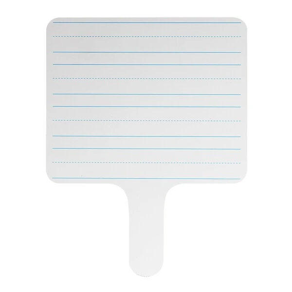 The two-sided rectangular dry erase writing paddles are ideal for quick responses or lessons. One side features lines for handwriting practice or sentence structures, reverse side features a blank dry erase side. Measures 7.75″ x 10″, and 1/8″ thick. Sold as a pack of 6 paddles.