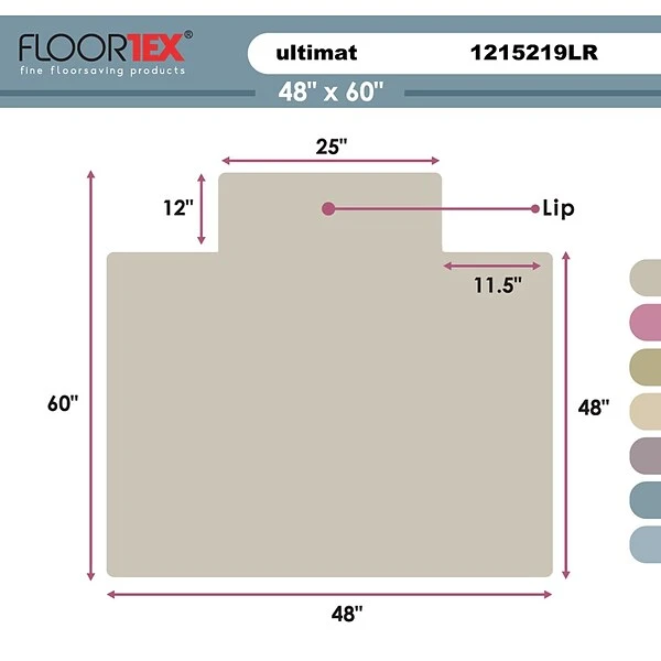 Floortex® Cleartex ultimat polycarbonate clear rectangular chairmat with 25″ x 12″ lip has a smooth back making it ideal for hard floor and measures 48″ x 60″.
