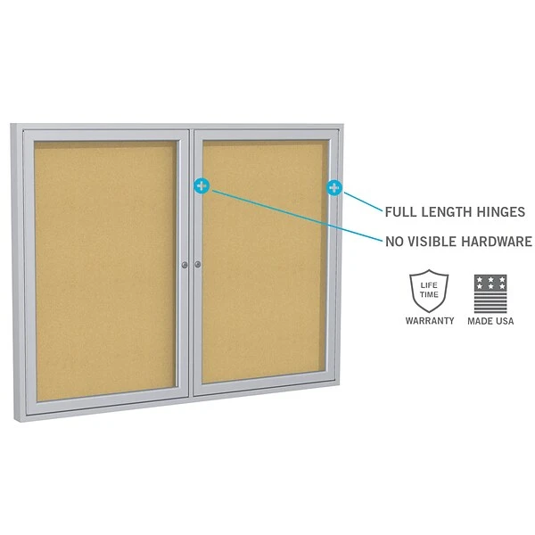 Ghent’s Enclosed Cork Bulletin Board is the perfect way to display messages, pictures, and important information securely. Natural cork boards are made with self-healing cork, meaning holes made from repeated and frequent tacking will disappear. You can use staples, tacks or pins and be confident that they will stay in place without pulling from the board. Ghent’s message centers are hand-made to ensure the cork surface will not peel or flake from the backing when installed indoors. Ghent’s 1-door enclosed bulletin boards are protected using shatter-proof acrylic panels, full-length door hinges, and locks that are flush with the frame. You can install the board in high-traffic, public areas without worrying about damage or tampering. Hidden corner brackets allow the message center to sit flush against the wall without any visible hardware, which adds protection from vandalism. The cork surface is paired with a Satin aluminum frame and includes 2 keys. Ships to you in Ghent’s worry-free packaging, designed specifically for shipping enclosed boards. Ghent’s Enclosed Cork Bulletin Board carries a 10-year warranty and is made in the USA. Recommended for indoor use only.