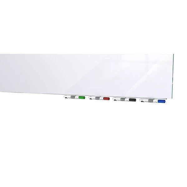 Aria Low Profile Glass Whiteboards achieve the look of weightless, floating glass. No visible hanging hardware or stand-offs allow the beauty of the frameless glass to complement any décor creating an unobstructed writing surface. Our team of engineers developed a heavy-duty hanging system that promotes security and confidence in the installation of your low profile glass whiteboard. With Aria glassboards, you can be confident your board will never bow, strain, or move from the wall. Aria can be hung on a variety of surfaces including, but not limited to, drywall, concrete and brick surfaces. Because of the unique hanging system, Aria glass whiteboards can be ordered specifically to hang in portrait or landscape positions depending on space and preference. Aria can be used as a single board for personal offices and conferences rooms, or create a glass whiteboard wall by lining up multiple glassboards in a row. Aria is constructed using premium ¼” tempered glass and when installed, floats just ½” from the wall. The lower steel support bar doubles as integrated magnetic marker storage, keeping the writing surface free from clutter. Available in 13 standard colors as well as non-magnetic and magnetic glass. Ships to you in Ghent’s worry-free packaging, designed specifically for shipping whiteboards. Comes with 4 markers and an eraser. Ghent’s full line of glass whiteboards, including Aria, carries a 50-year warranty and is made in the USA.