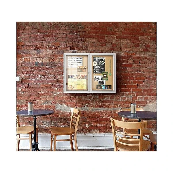 Display required information and inter-department memos easily with this enclosed corkboard. The two locking doors on this board ensure that notices are not tampered with. The self-healing cork base on this board closes holes when tacks and staples are removed, giving a consistently clean look. Mount this cabinet-style corkboard with the included, concealed corner brackets to easily attach this bulletin board to a wall. The clear panels of this Ghent enclosed cork bulletin board are made with shatter-resistant acrylic for added durability.