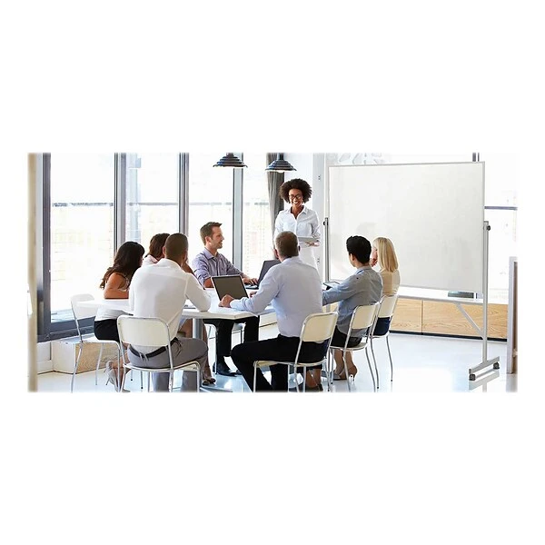 - Non-magnetic, double-sided mobile dry-erase whiteboard is perfect for classrooms or offices