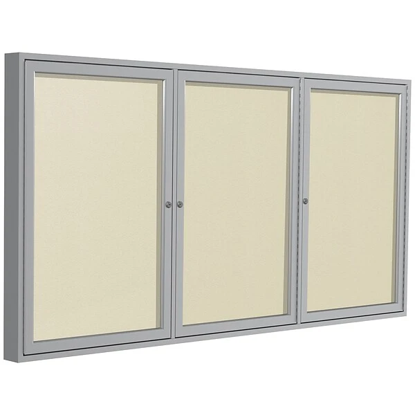 - Enclosed three-door bulletin board is a great solution for your display and reminder needs